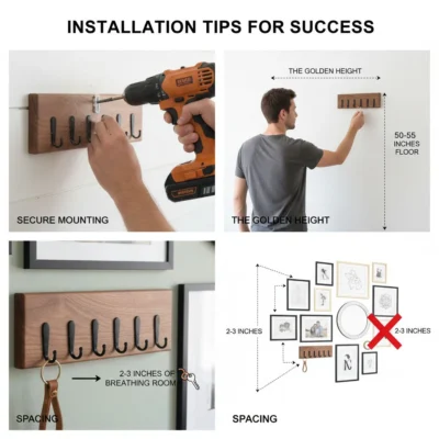 Spacing: Leave about 2 to 3 inches of “breathing room” between the key holder and the nearest frame. This prevents the hanging keys from overlapping and hiding your beautiful artwork.