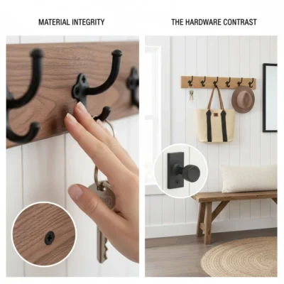 Layering Textures: Don’t let the wall go lonely. Position your key holder above a wooden bench or a woven seagrass basket. This “layering” of different natural materials is the secret to the cozy Farmhouse vibe.