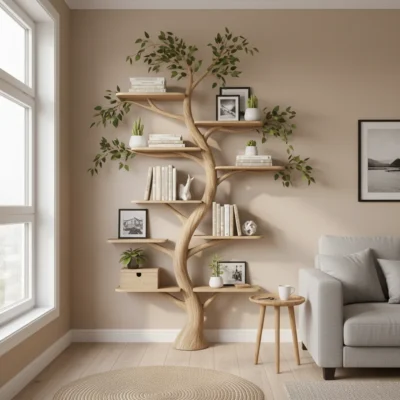 Placed next to a sofa, armchair, or media console, a tree bookcase can hold books, photo frames, or small plants — adding both function and style to your main living area. It also serves as a conversation starter thanks to its unique shape.